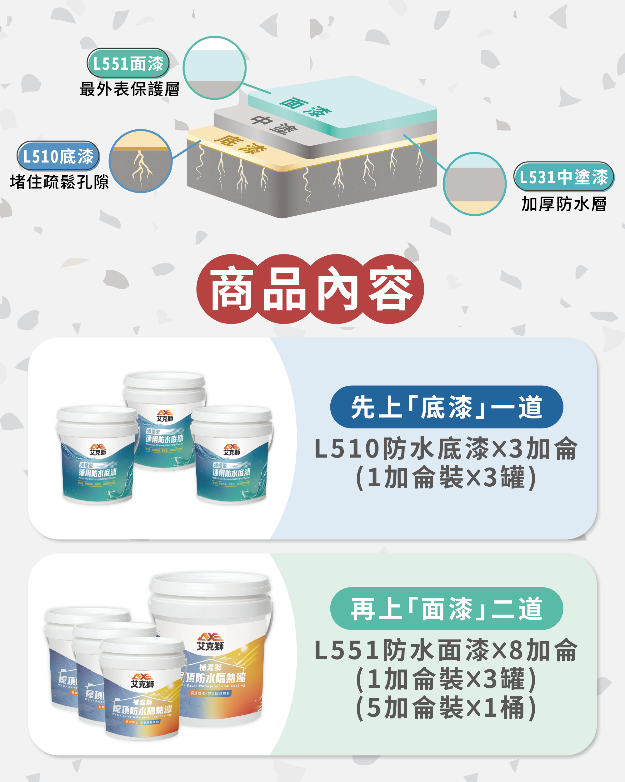L551防水隔熱面漆×3罐(1加侖裝)+1桶(5加侖裝)
