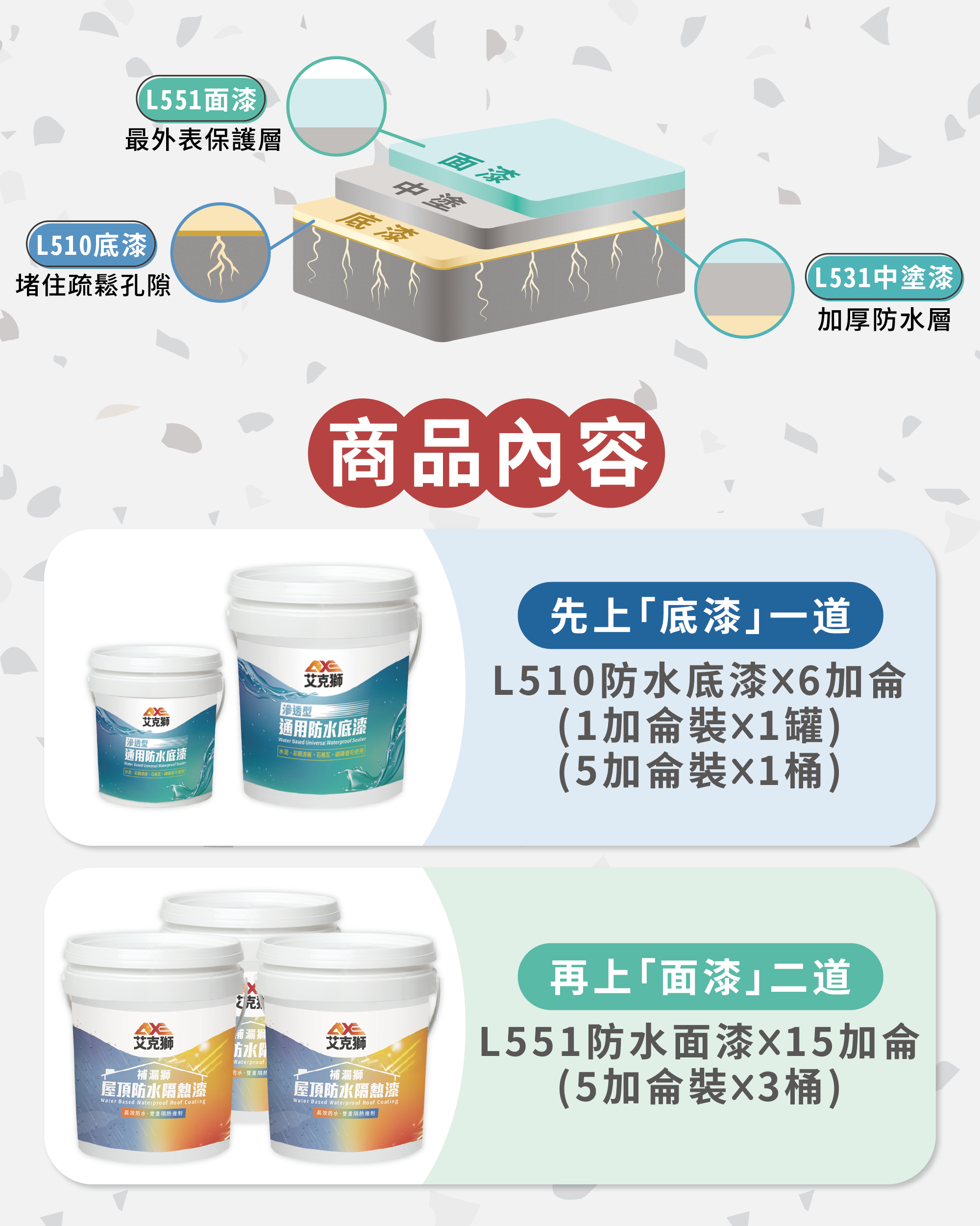 L510滲透防水底漆×1罐(1加侖裝)+1桶(5加侖裝)